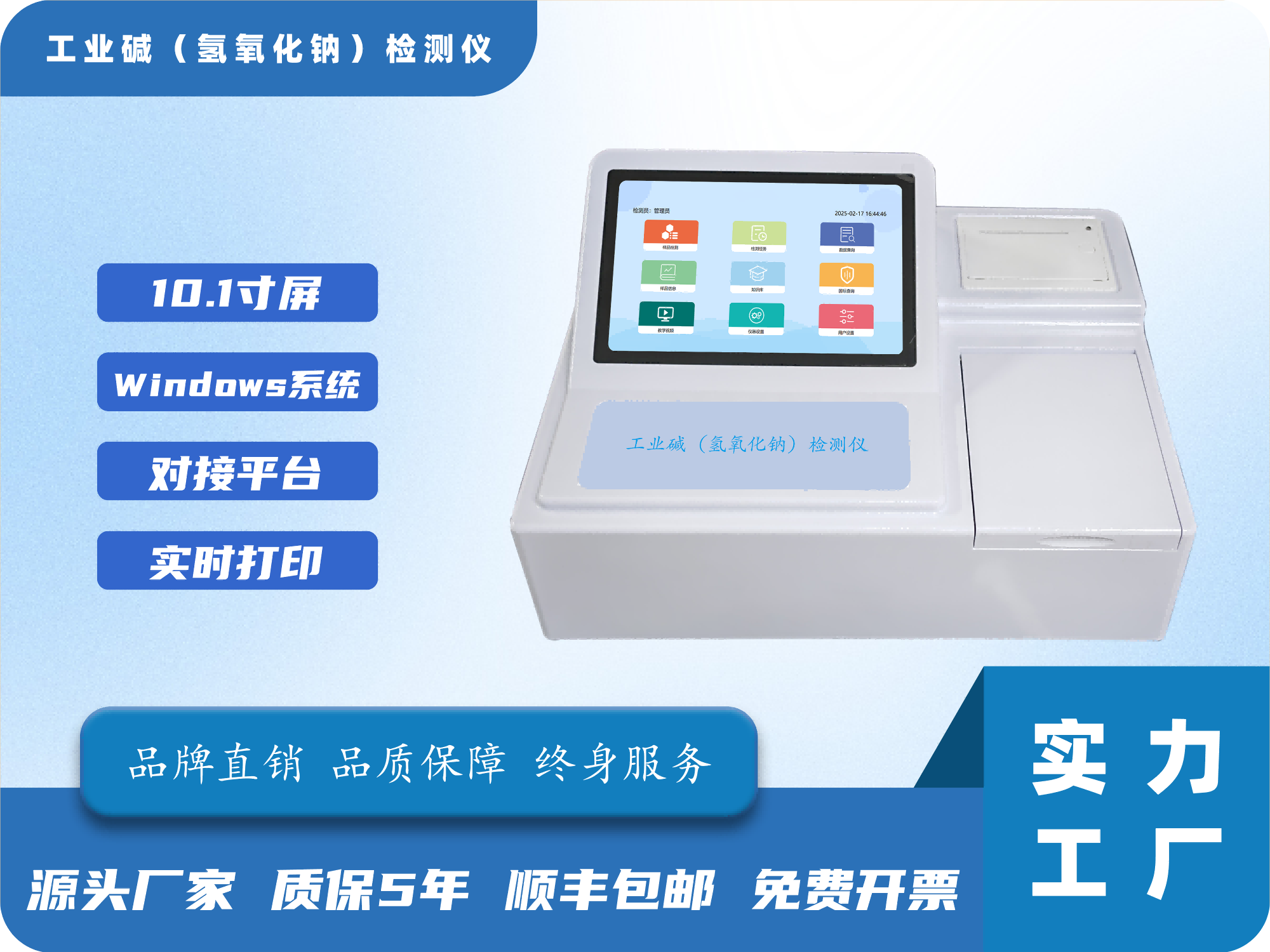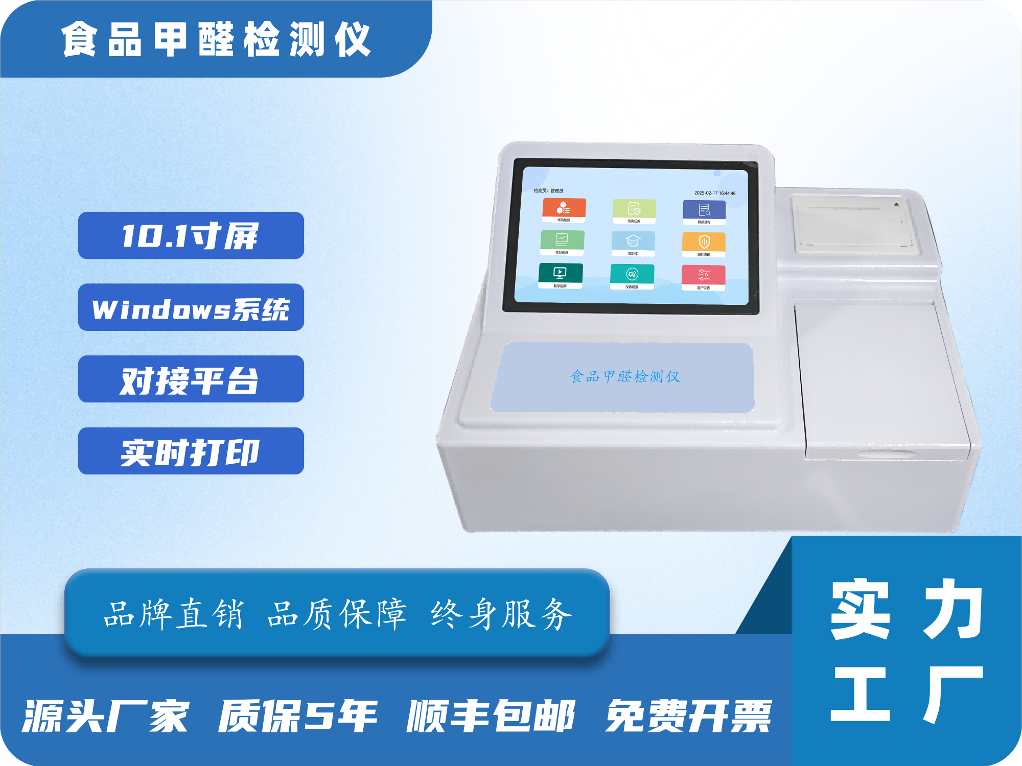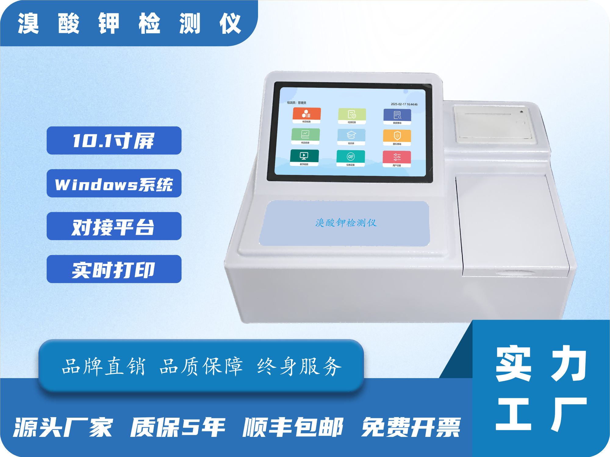 11、打印功能:内置80mm热敏打印机,单条或多条数据合并打印,打印信息包括名样品信息、用户信息、检测信息等,具备多种打印模式可选(标准打印、精简打印、合并打印)