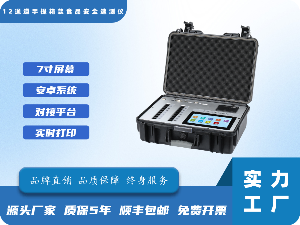 食品添加剂快速检测仪湖北泓森凯HSK-FS-1012T食品添加剂快速检测仪能够快速检测食品中二氧化硫、亚硝酸盐、苯甲酸钠、山梨酸钾、甜蜜素、糖精钠、明矾、丙二醛、过氧化苯甲酰、亚铁氰化钾、维生素C、茶多酚等,适用于食品生产企业、农业生产基地、农贸市场、质量监督、卫生防疫等部门对食品安全进行监测。